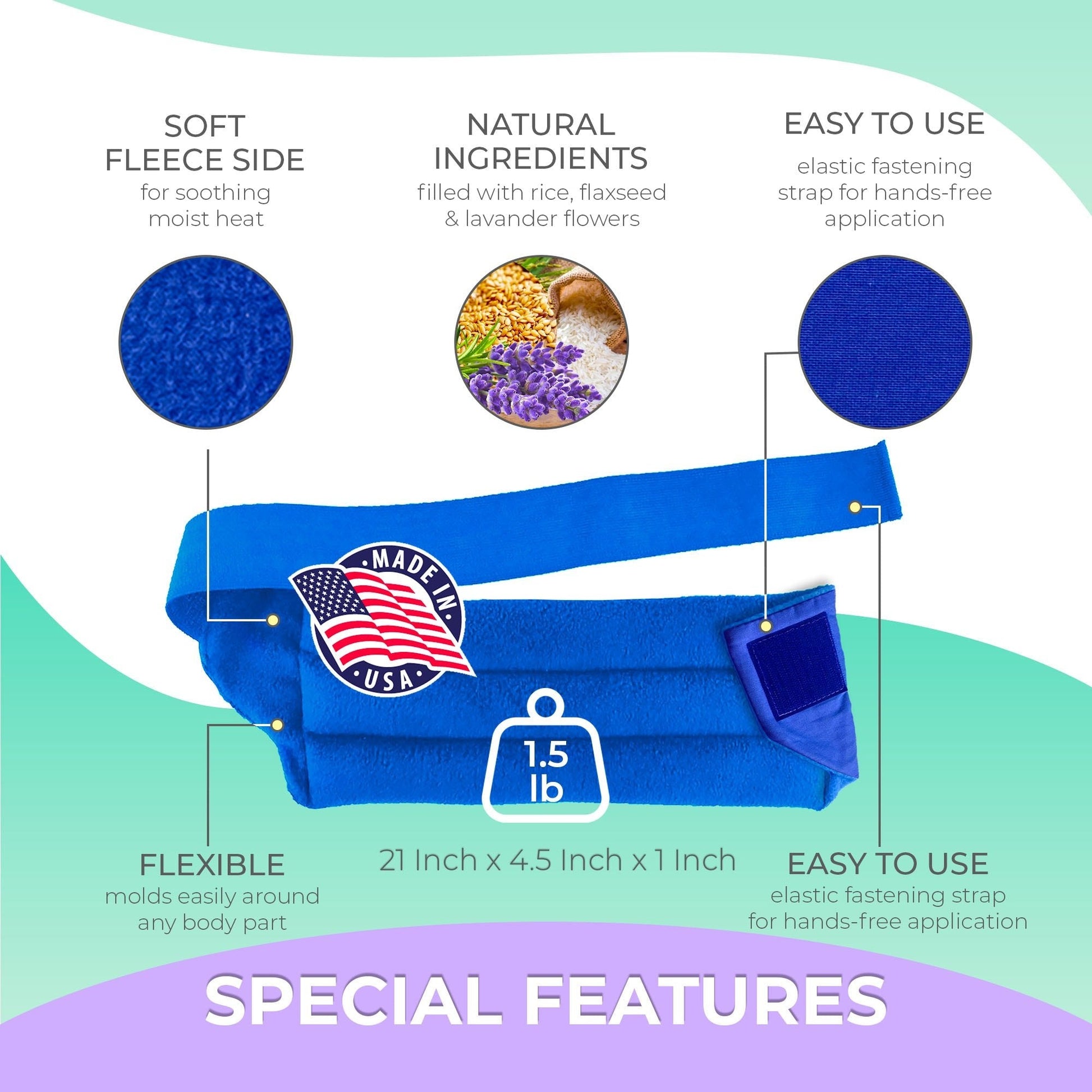 This product is designed to provide you hot therapy for maximum relief of aches and stress that your body builds up and deals with on a daily basis. The pack is adjustable with an elastic strap that fits all sizes and allows you to conveniently wrap the pack around your lower back or stomach. This feature is very beneficial because unlike electric heating pads, this natural heating pad can provide you with the hot therapy you need while you’re cooking, relaxing around the house, driving, working on the computer, exercising, and more. Simply heat in the microwave for heat therapy. The pack is ideal for the lumbar/lower back area- back pain, sore and tense muscles, bruised areas, and more. Stomach/abdominal area- menstrual cramps, stomach discomfort, sore/tense muscle, and more. Do not settle for another day of aches and discomfort! Now is the perfect time to try the Adjustable Lumbar Back & Abdomen Heat Pack. Add to cart and give yourself the gift to a more healthy, active, and comfortable lifestyle today.