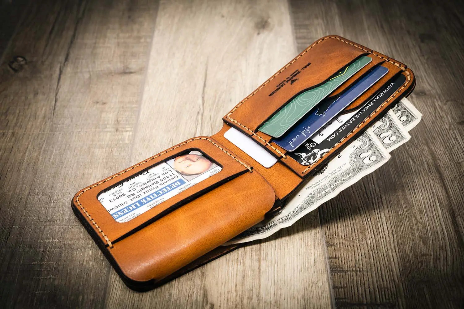 We infuse quality from start to finish, ensuring that your personalized leather wallet is designed to last a lifetime. We use the best Veg-Tanned Harness Leather from a USA tannery with 150 years of experience. We produce heirloom quality products by utilizing traditional leather working skills and tools from our studio in Texas. Harness Leather will patina over time, evolving your wallet while still displaying the highest quality.