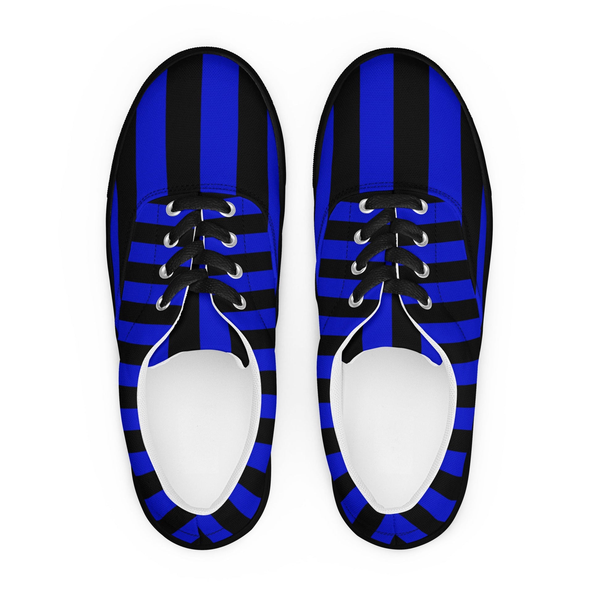 Black and Blue Striped Men’s Lace-up Canvas Shoes