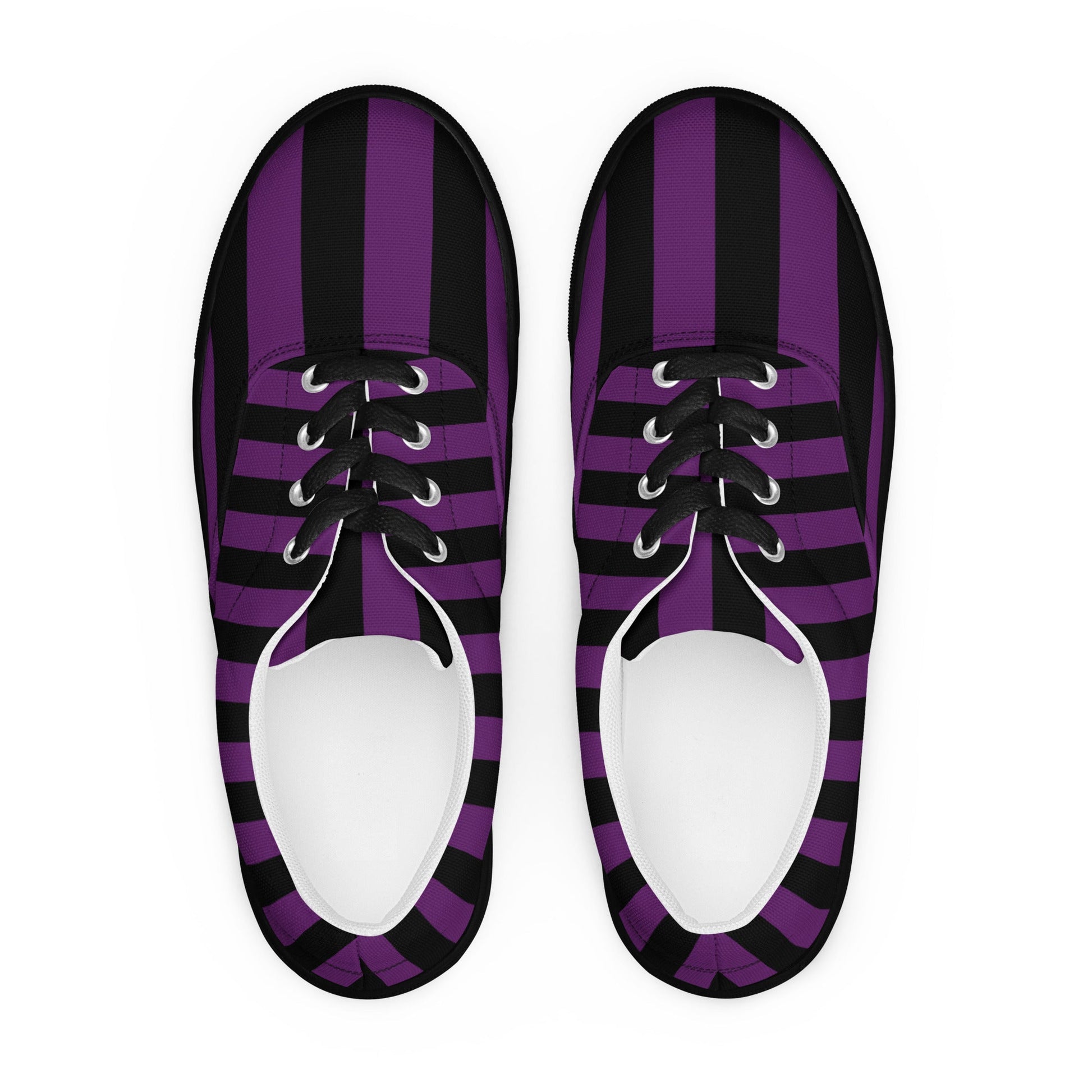 Black and Purple Striped Men’s Lace-up Canvas Shoes
