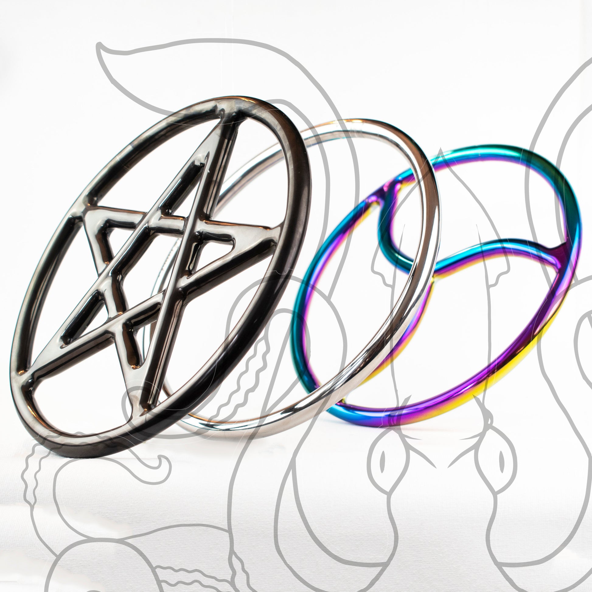 A larger version of our classic shibari ring for bondage and suspension. These rings have a 9" outer diameter to give a larger working area and allow for a variety of beautiful designs.