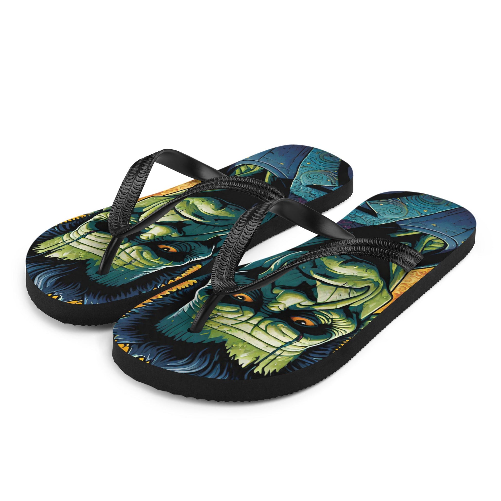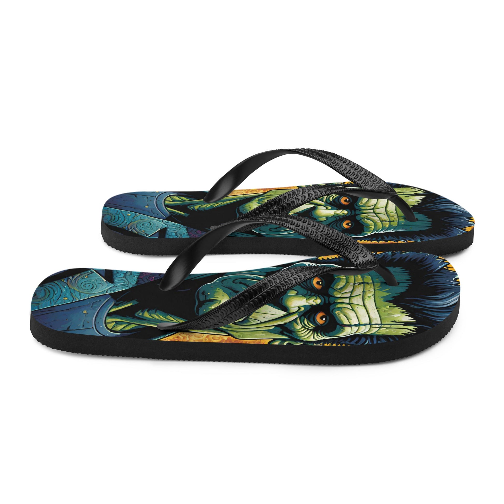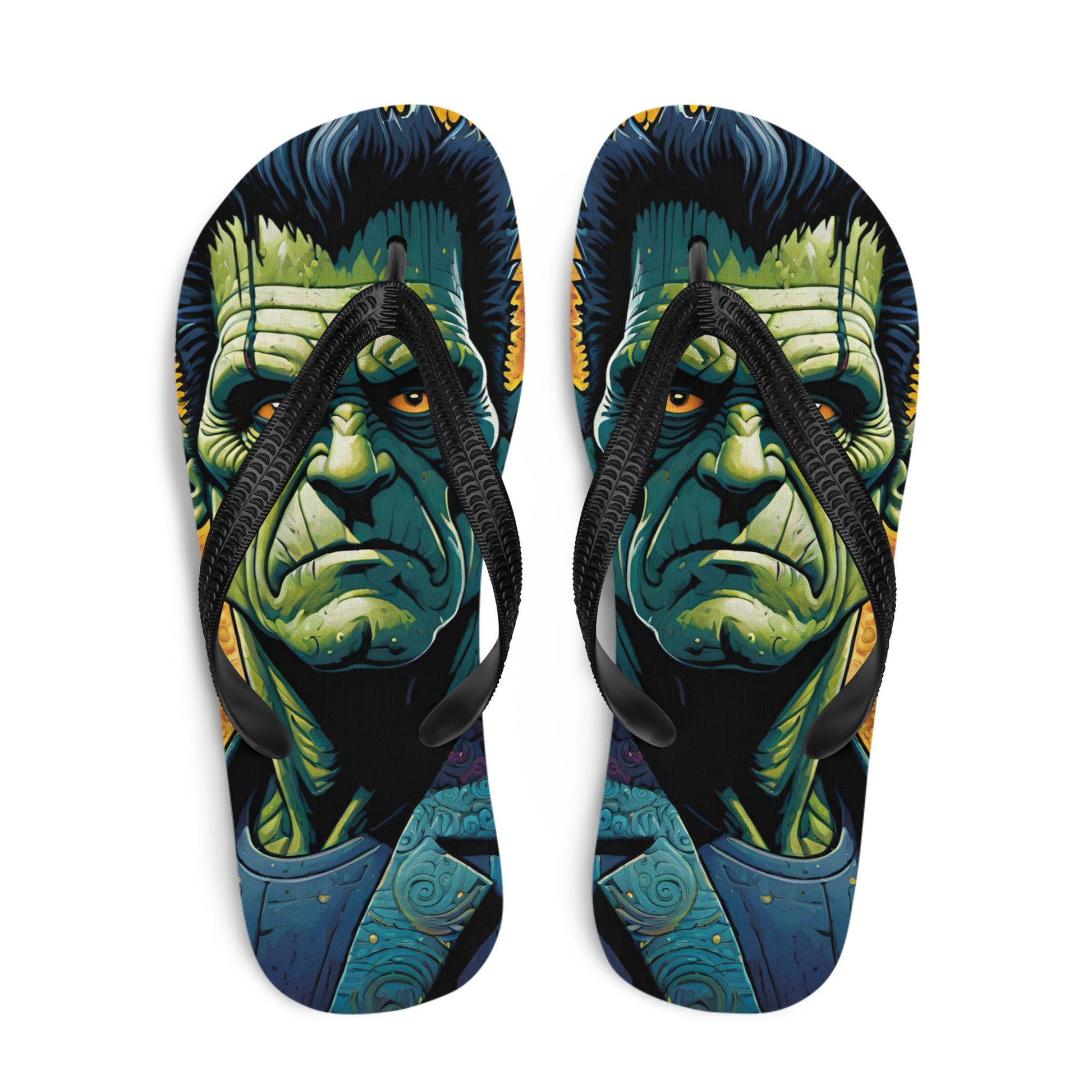 Prepare for an adventurous and carefree summer with a pair of colorful Frankenstein gothic flip flops that are created just for you! The rubber sole is lined with a soft fabric to make sure you feel comfortable wherever your day takes you.