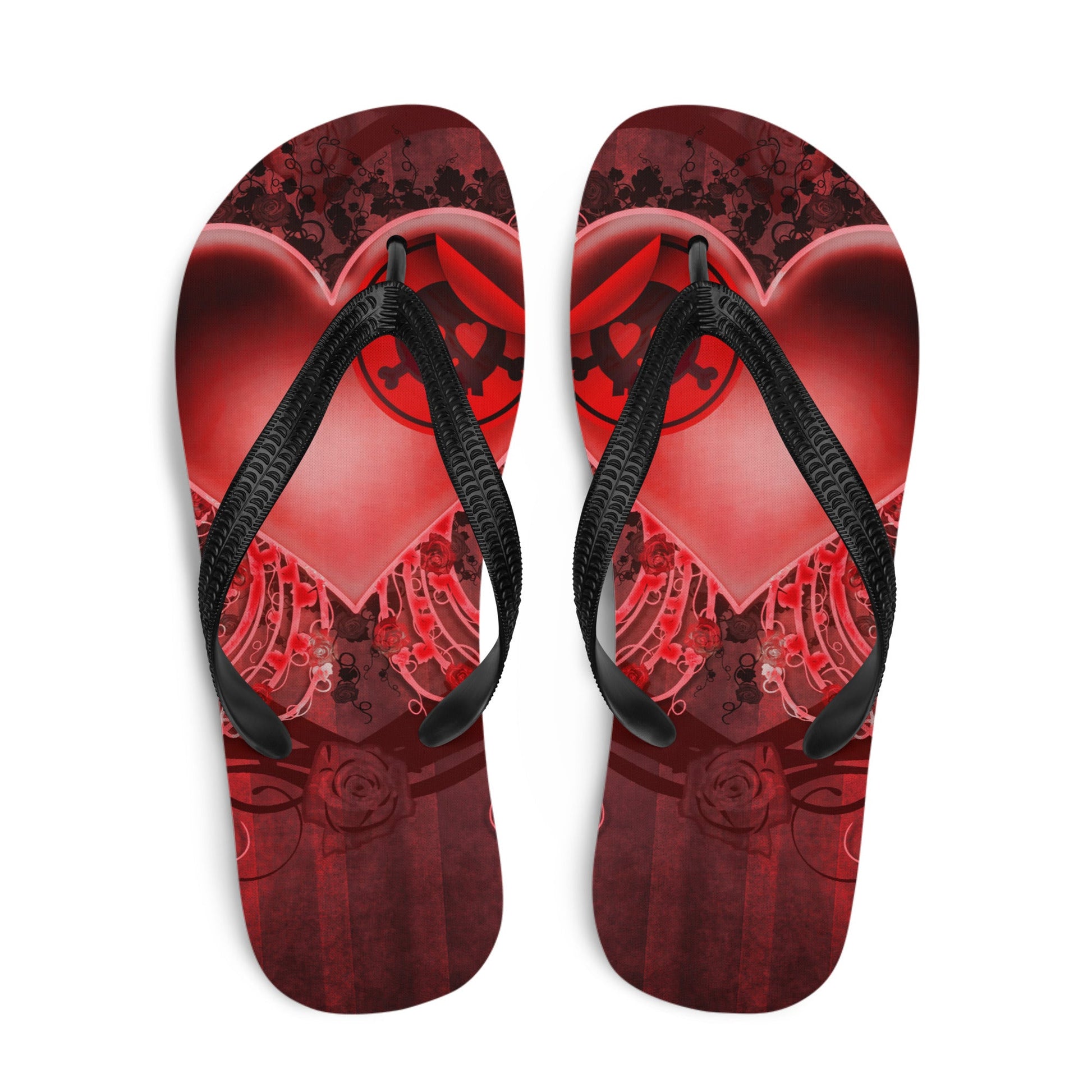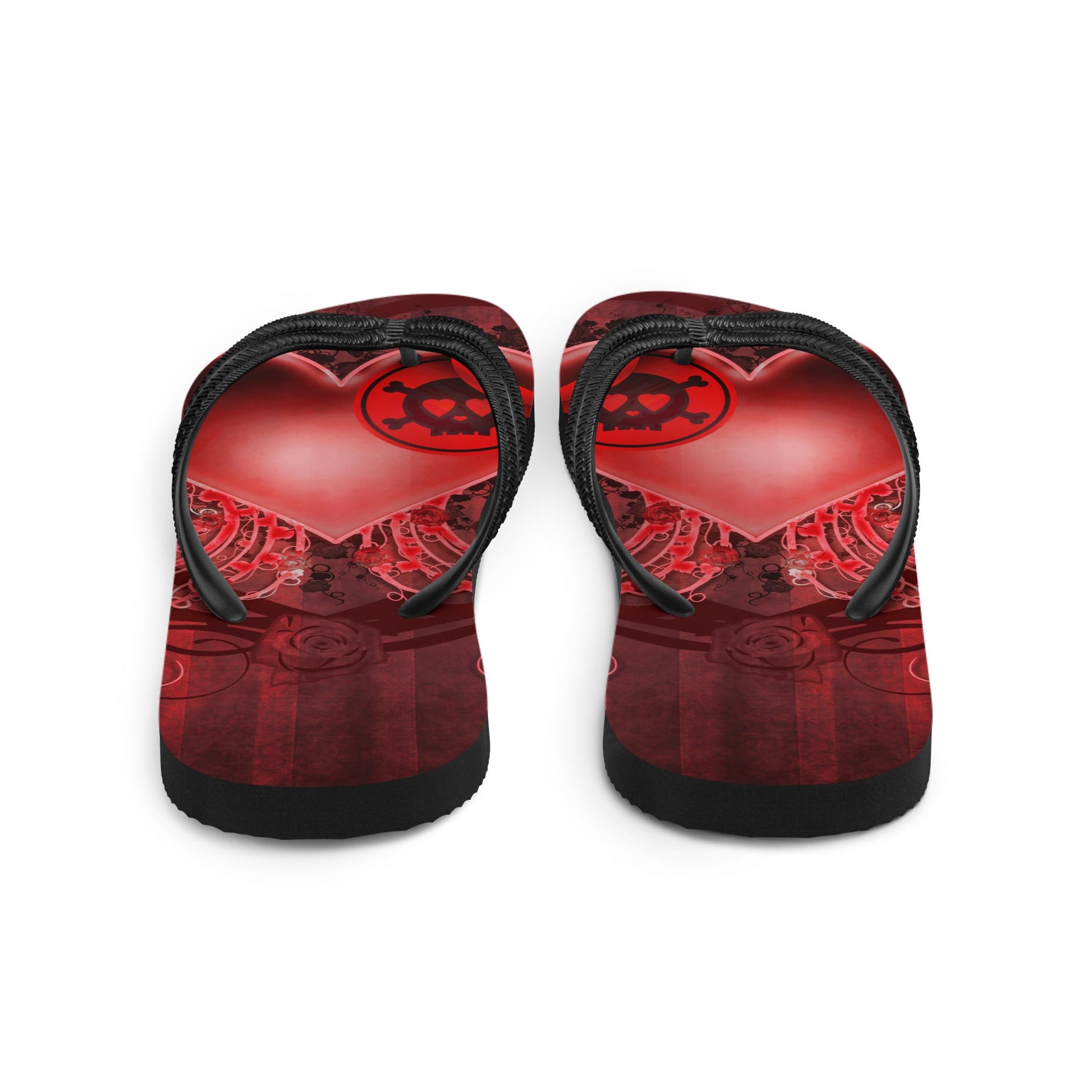 Prepare for an adventurous and carefree summer with a pair of colorful skull heart gothic flip flops that are created just for you! The rubber sole is lined with a soft fabric to make sure you feel comfortable wherever your day takes you.