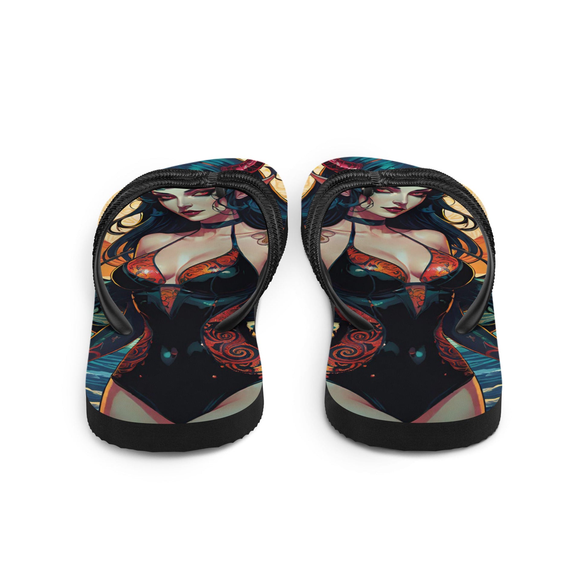 Prepare for an adventurous and carefree summer with a pair of colorful succubus gothic flip flops that are created just for you! The rubber sole is lined with a soft fabric to make sure you feel comfortable wherever your day takes you.