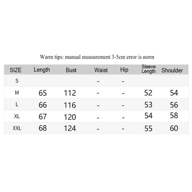 Size chart measurement is for reference only. Manual measurement error is about 3-5 cm.