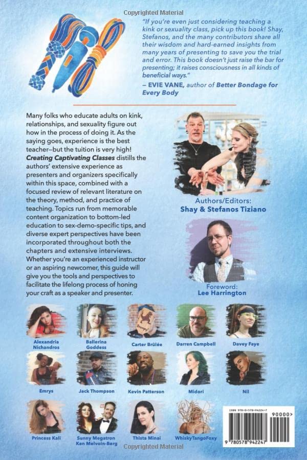 Many folks who educate adults on kink, relationships, and sexuality figure out how in the process of doing it. As the saying goes, experience is the best teacher—but the tuition is very high! Creating Captivating Classes distills the authors’ extensive experience as presenters and organizers specifically within this space, combined with a focused review of relevant literature on the theory, method, and practice of teaching. Topics run from memorable content organization to bottom-led education to sex-demo-specific tips, and diverse expert perspectives have been incorporated throughout both the chapters and extensive interviews. Whether you’re an experienced instructor or an aspiring newcomer, this guide will give you the tools and perspectives to facilitate the lifelong process of honing your craft as a speaker and presenter.