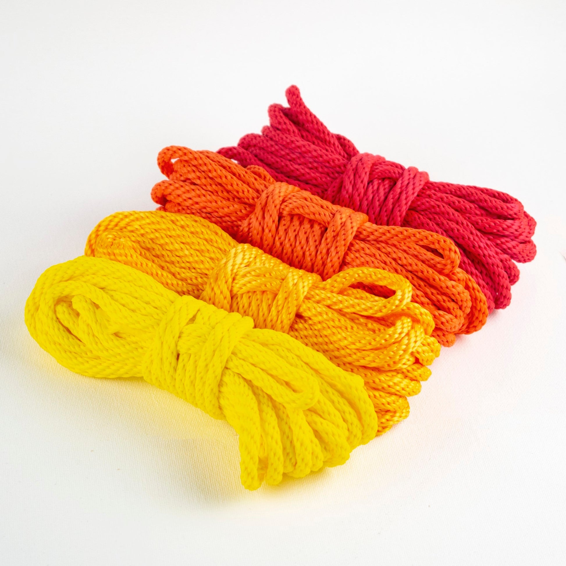 Select the length you desire, and check 2-6 colors from the color list. See the color chart in the product photos for your color options. If you are ordering a three-color rope, it can have a dominant color (like our cupcake/unicorn rope), or it can be striped (more like a garter snake). NEW 2025: If you want blended rope like our starry night, you can blend up to 6 colors in an 800ft spool. Please specify your desires in the shopping cart notes before checkout.