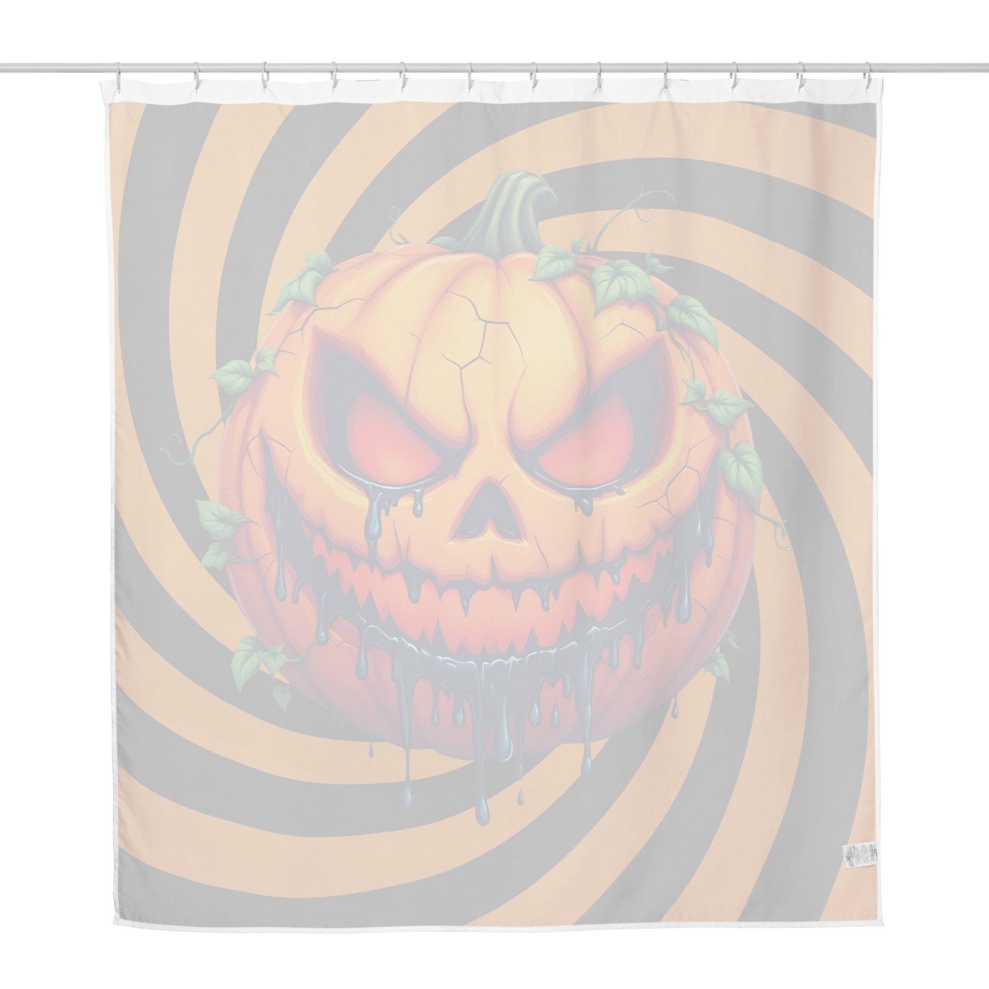 Evil Jack-o-lantern on Black and Orange Spiral Shower Curtain