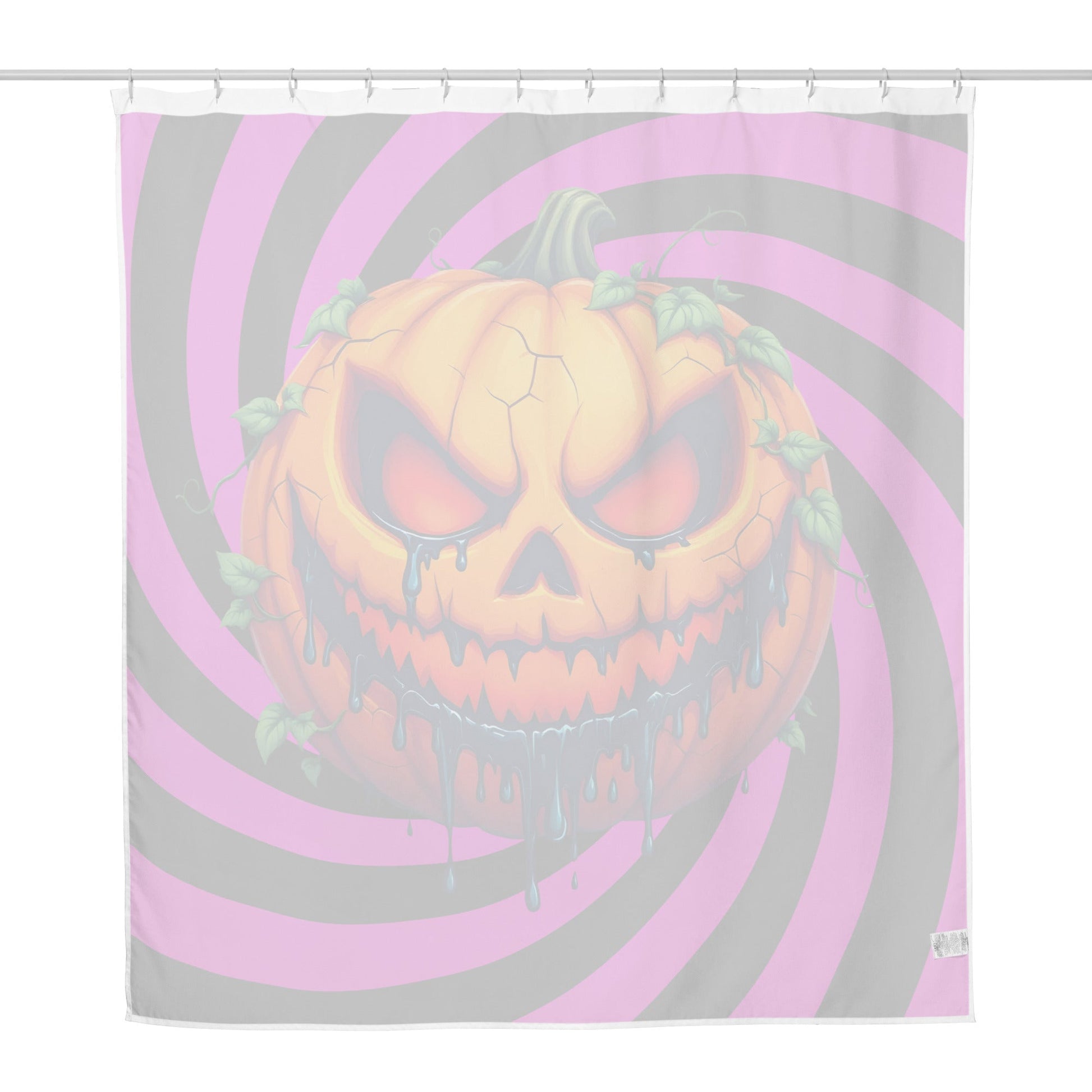 Evil Jack-o-lantern on Black and Pink Spiral Shower Curtain