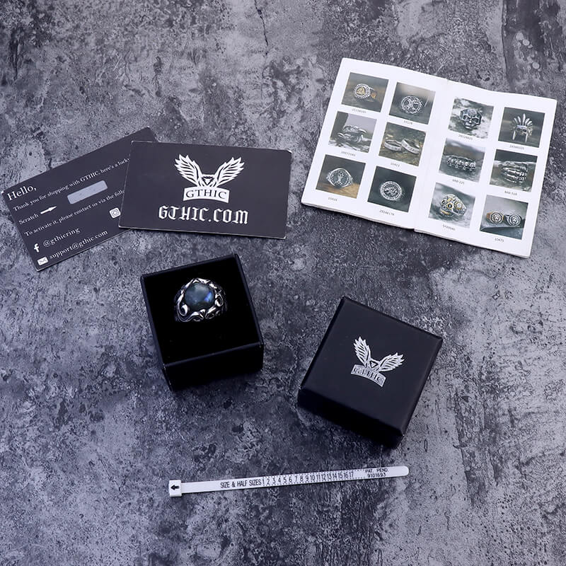 The mysterious and quiet moonstone ring with Gothic style pattern gives an invisible attraction that makes people can't take their eyes off it. In New Age beliefs, the moonstone symbolizes femininity, intuition, new beginnings, and inner wisdom. It is associated with wisdom and fertility. Get yours now!