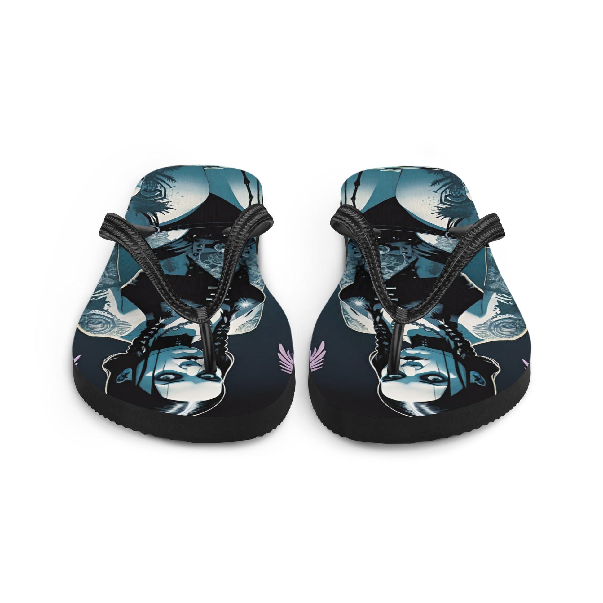 Prepare for an adventurous and carefree summer with a pair of dark gothic flip flops that are created just for you! The rubber sole is lined with a soft fabric to make sure you feel comfortable wherever your day takes you.
