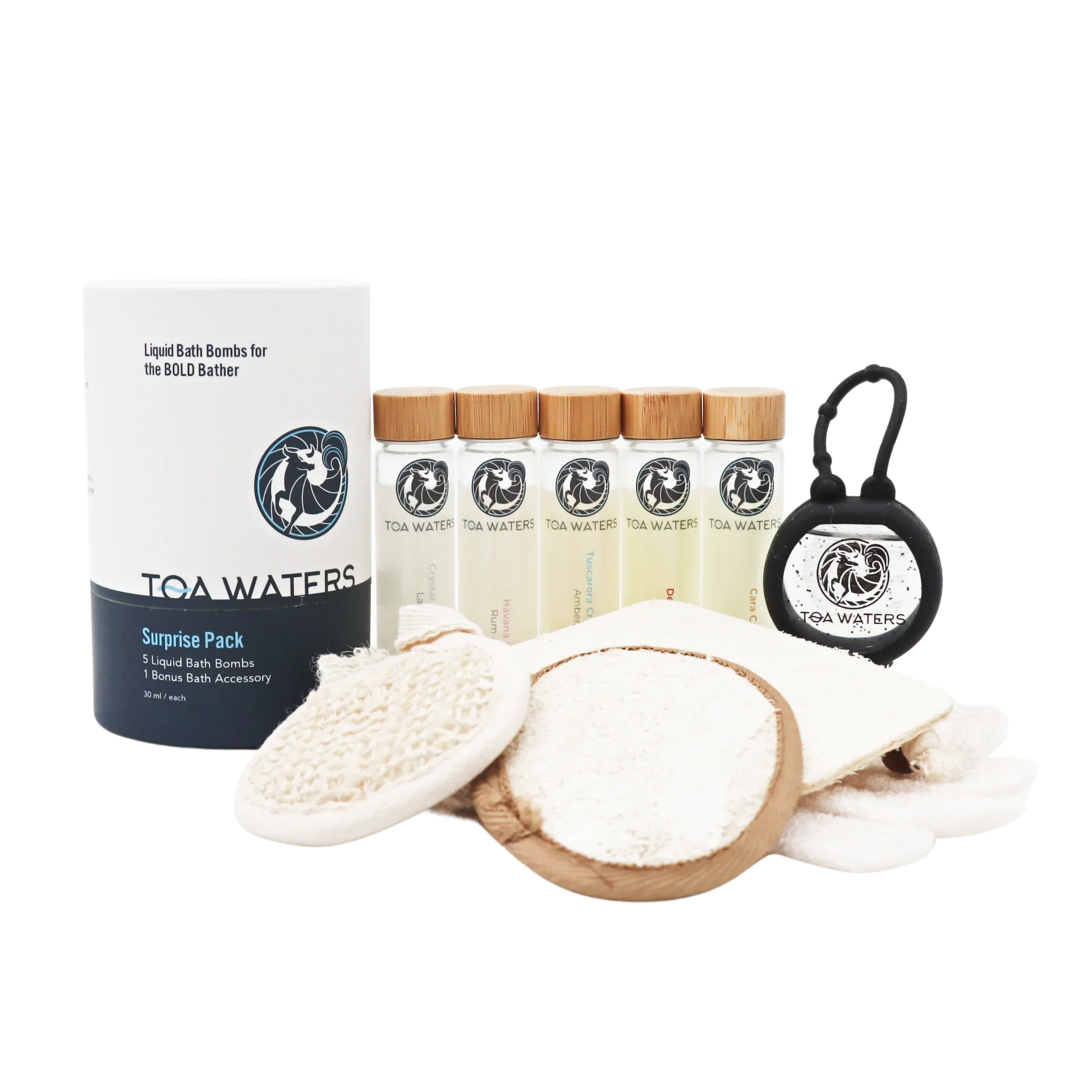 Unwrap the excitement of our Liquid Bath Bombs and Bath Accessory Surprise Gift Set. Each set includes five mystery 30 ml handcrafted liquid bath bombs and a surprise bath accessory. You won’t know what you’re getting until it arrives.