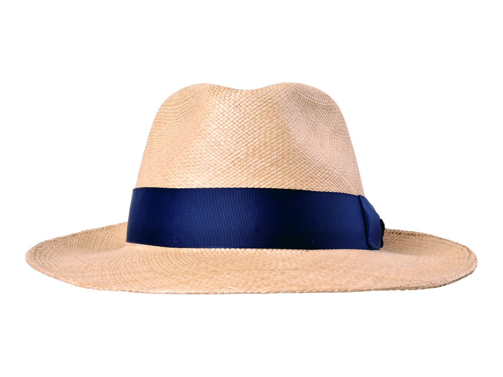 Its blue band adds a distinctive element that sets it apart, blending traditional craftsmanship with a contemporary accent. The Panama Hat Santorini features a refined crown and medium brim that frame the face gracefully, ideal for both formal events and relaxed summer wear.