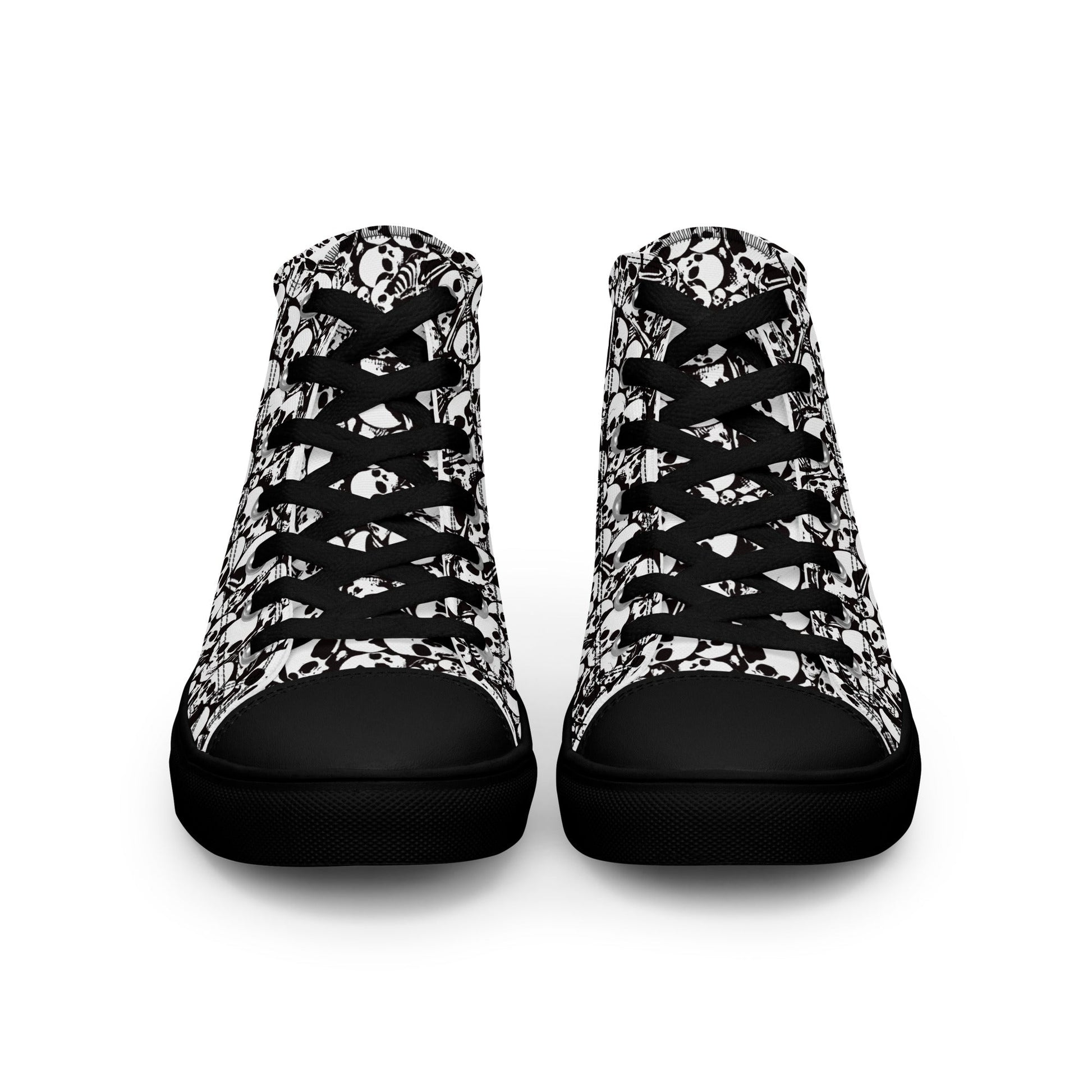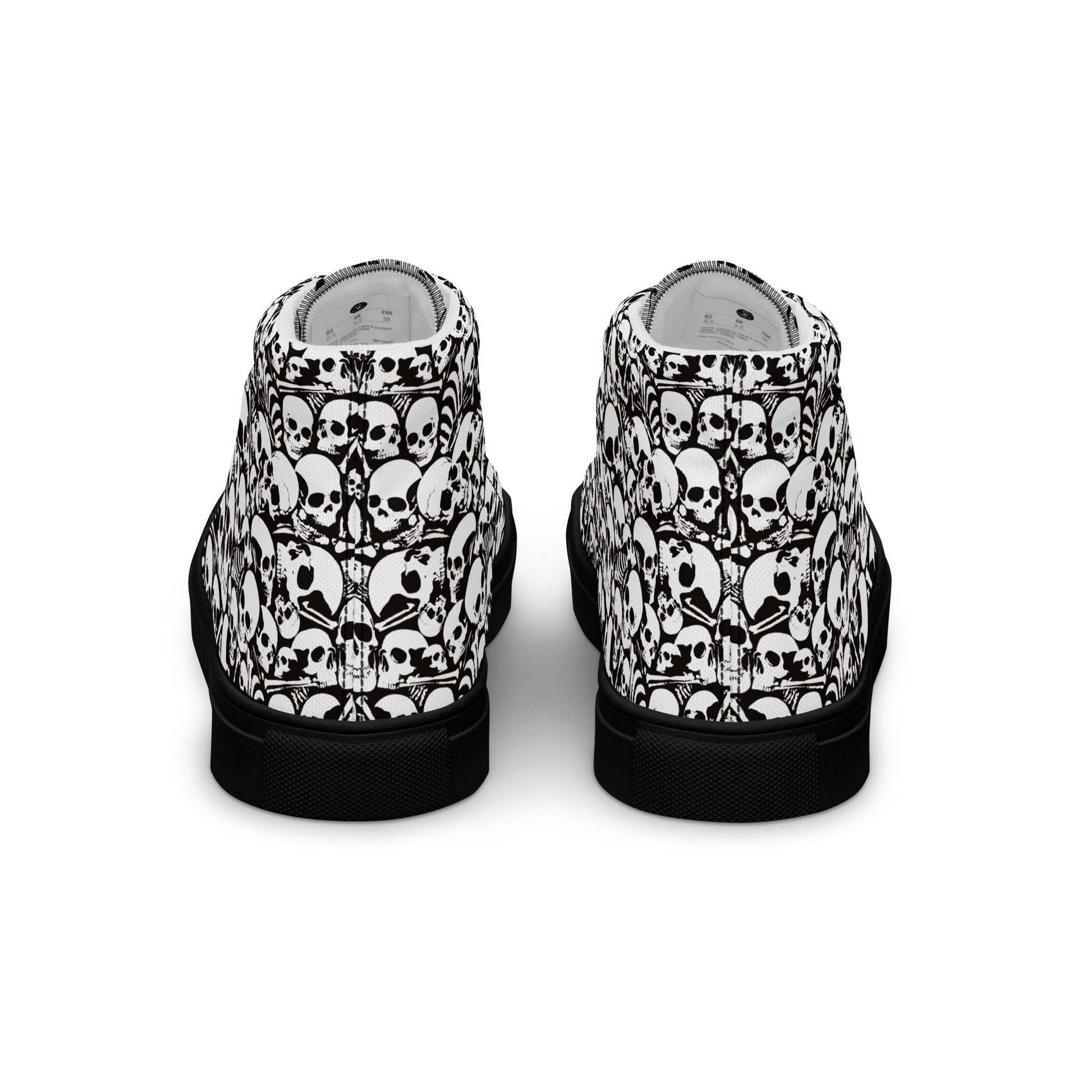 Step up your shoe game with these Skull and Bones High Top Canvas Shoes. These handmade, trendy shoes are sure to spice up your outfit. Get yours now!