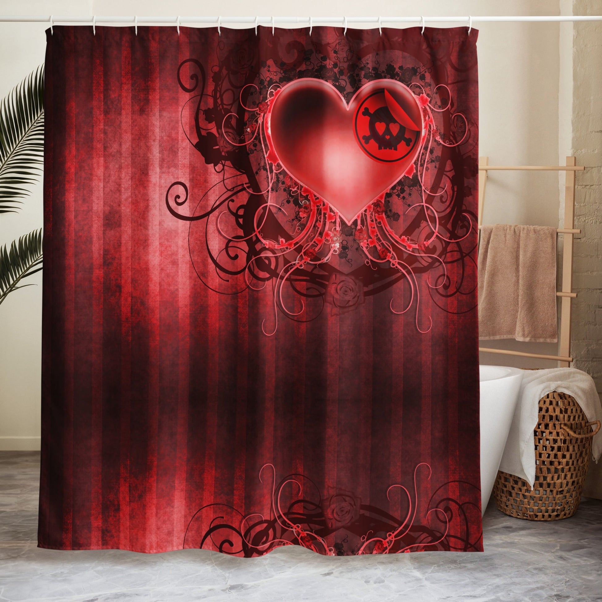 Skull Heart Shower Curtain