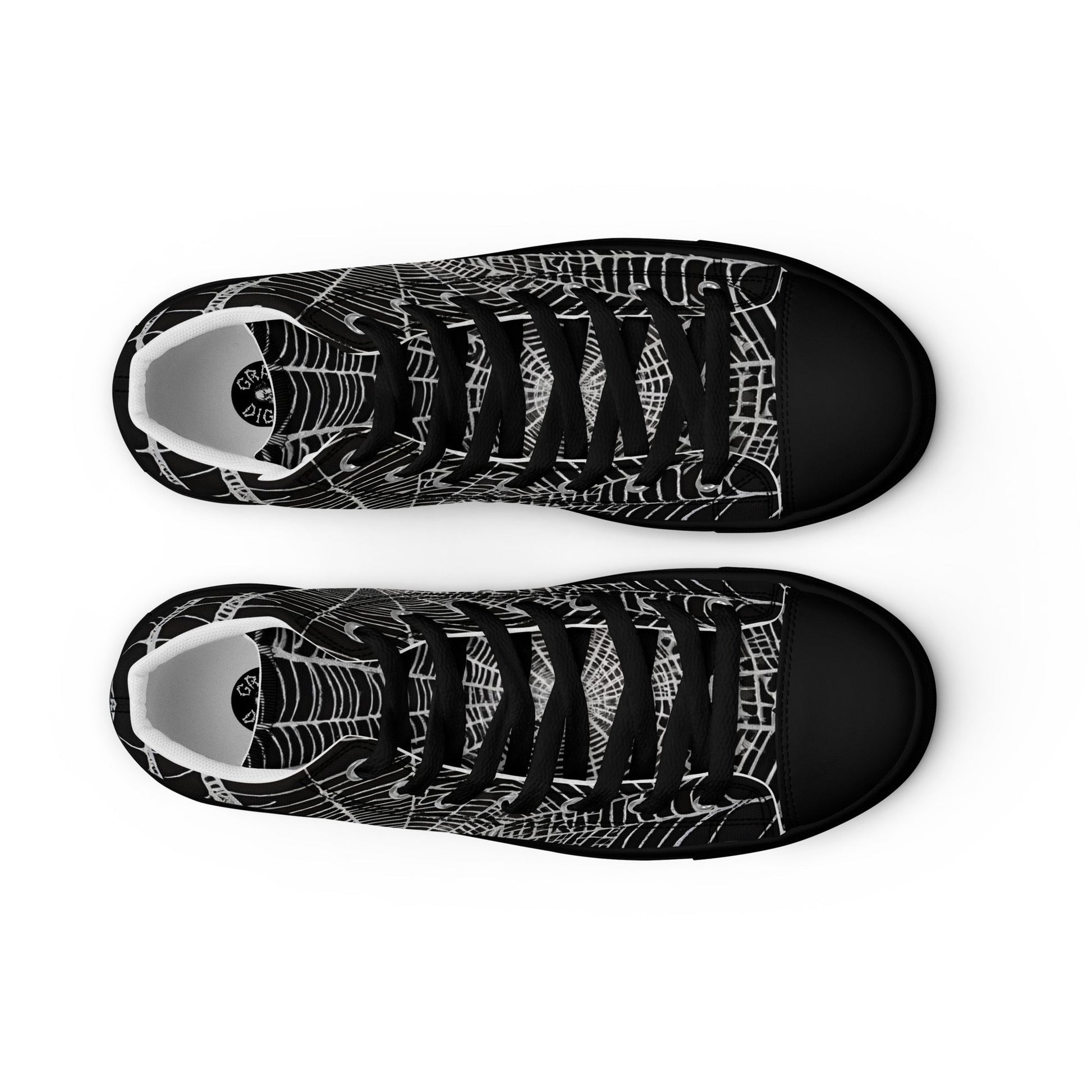 Step up your shoe game with these Spider Web Grave Digs High Top Canvas Shoes. These handmade, trendy shoes are sure to spice up your outfit. Get yours now!