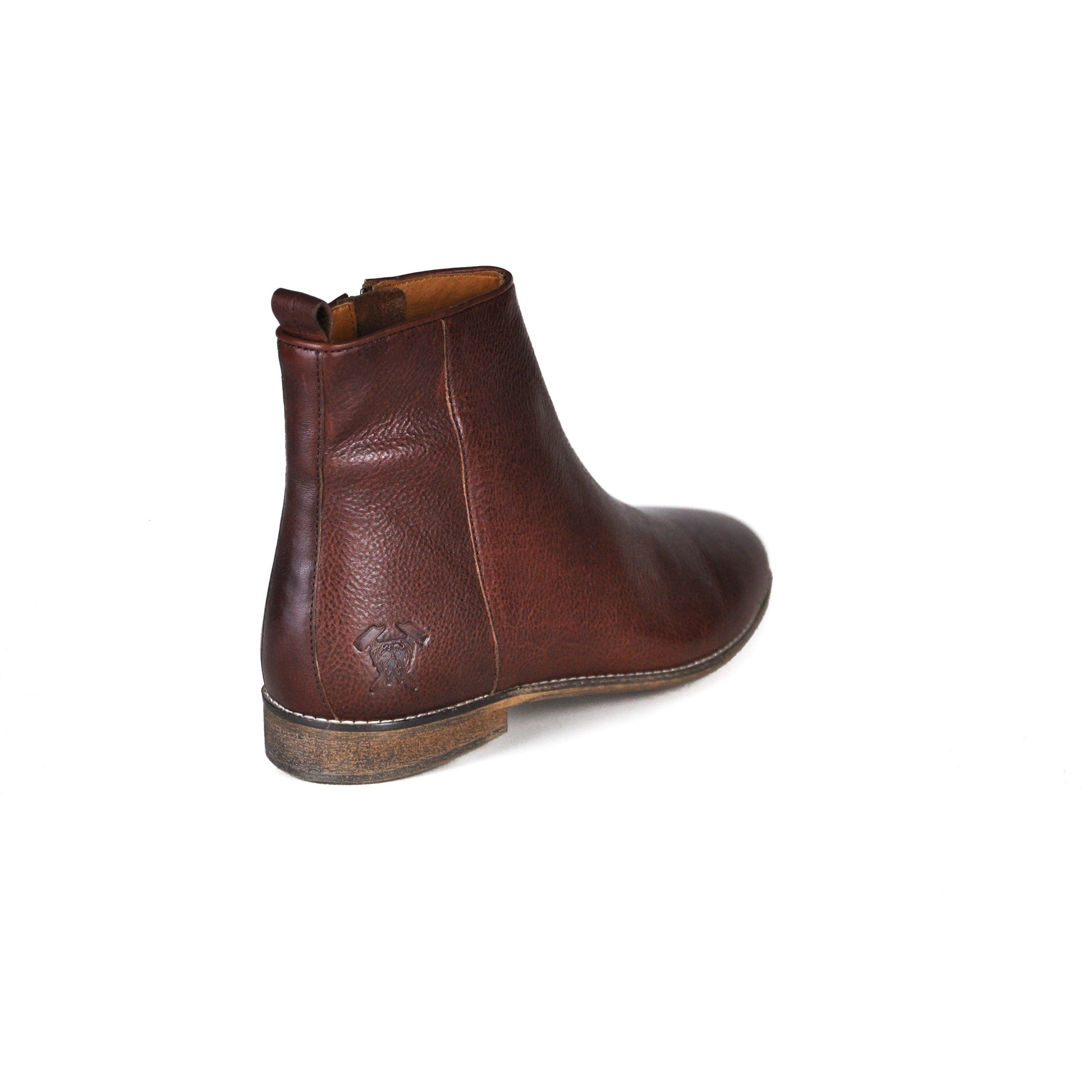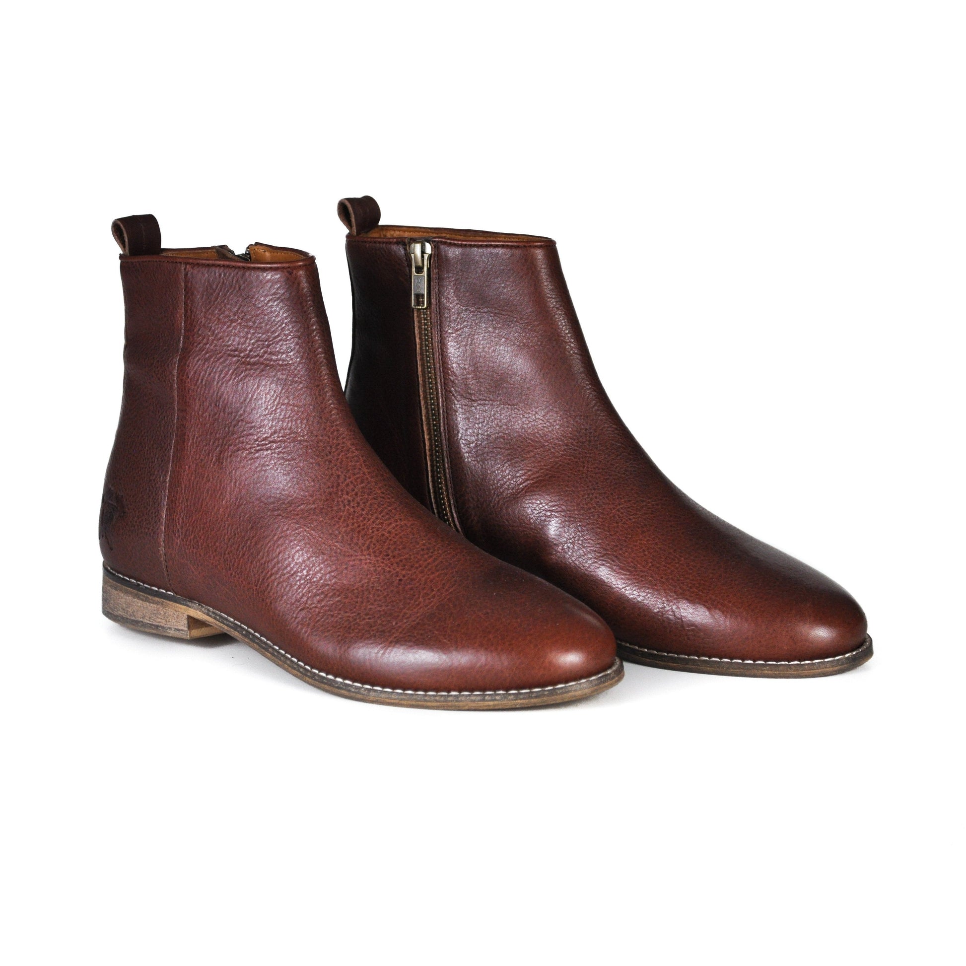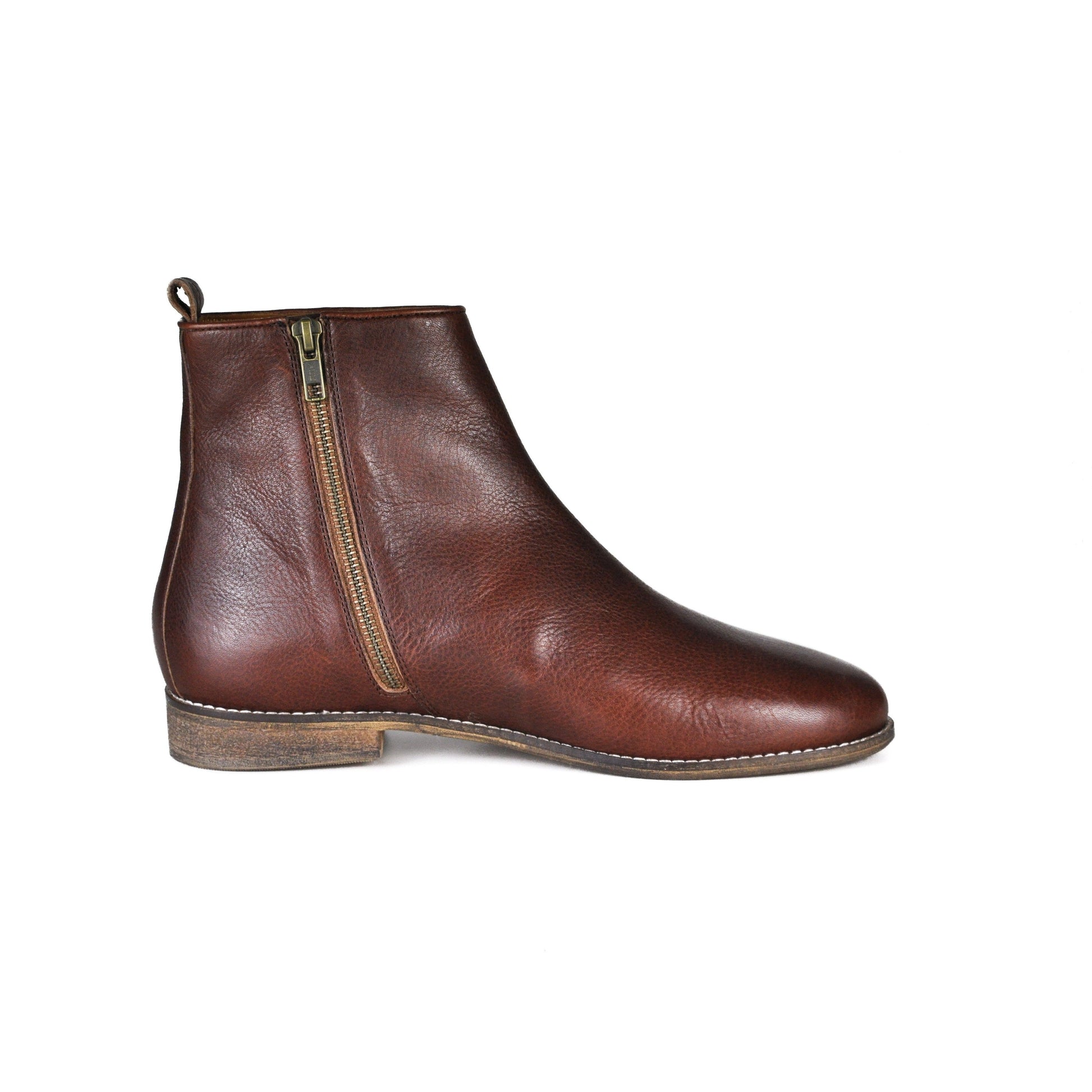 An ankle boot with an inside (medial side) zipper. Most footwear historians (don’t laugh- they exist!) consider this style an updated version of the Chelsea boot – as the zipper was not invented until nearly 100 years after elastic! The Gunnar is the Ronan’s big brother…both built on the Valor last with same leather, lining and outsole. As on Ronan, we also hand burnish the toe and heel to give a warm vintage vibe. The wood block heel is also hand-burnished. To complete the vintage look these styles sport the same stitched leather “welt” (the piece that sits on top of the outsole and wraps around the entire shoe).
