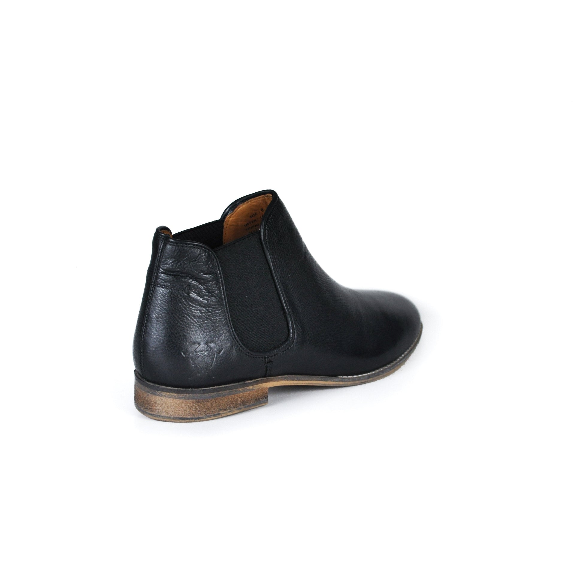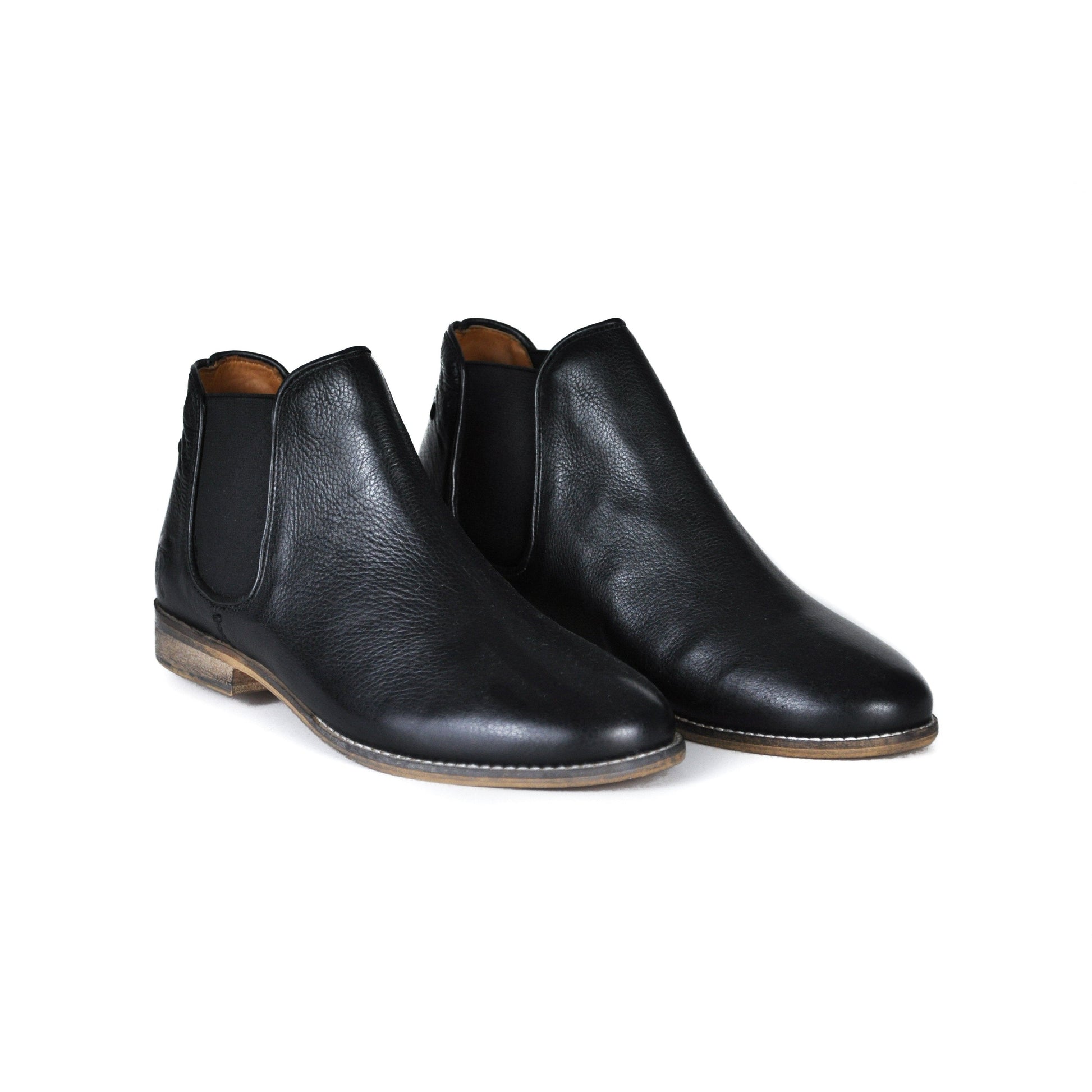 Our “Chelsea shoe boot”– Chelsea, because of its twin elastic panels; Shoe boot, because it’s lower than a boot, but taller than a shoe. Worn under longer pants it looks like a boot but has the relative comfort and ease of entry of a loafer. The Ronan (and its companion Gunnar) lean to the dress up side of the line. But both safely qualify under the “jeans” rule: [To wit: Any style must look great with a pair of jeans- in order to qualify for Hound&Hammer status]. We make the Ronan in a tumbled black and a beautiful cognac leather with a slight “pull-up” effect that adds a rich depth to the leather. These leathers have an oily finish to give just the slightest sheen…Not shiny, but not dull. The Ronan is built on the Valor last. This last is more streamlined – built for speed. The fitting is slightly snugger than our other lasts – as you expect a dressier shoe to fit. Full glove leather lining. The outsole is a compressed form of TPR commonly referred to as “German Resin”. It is known as a great alternative to leather outsole in terms of flexibility and durability.