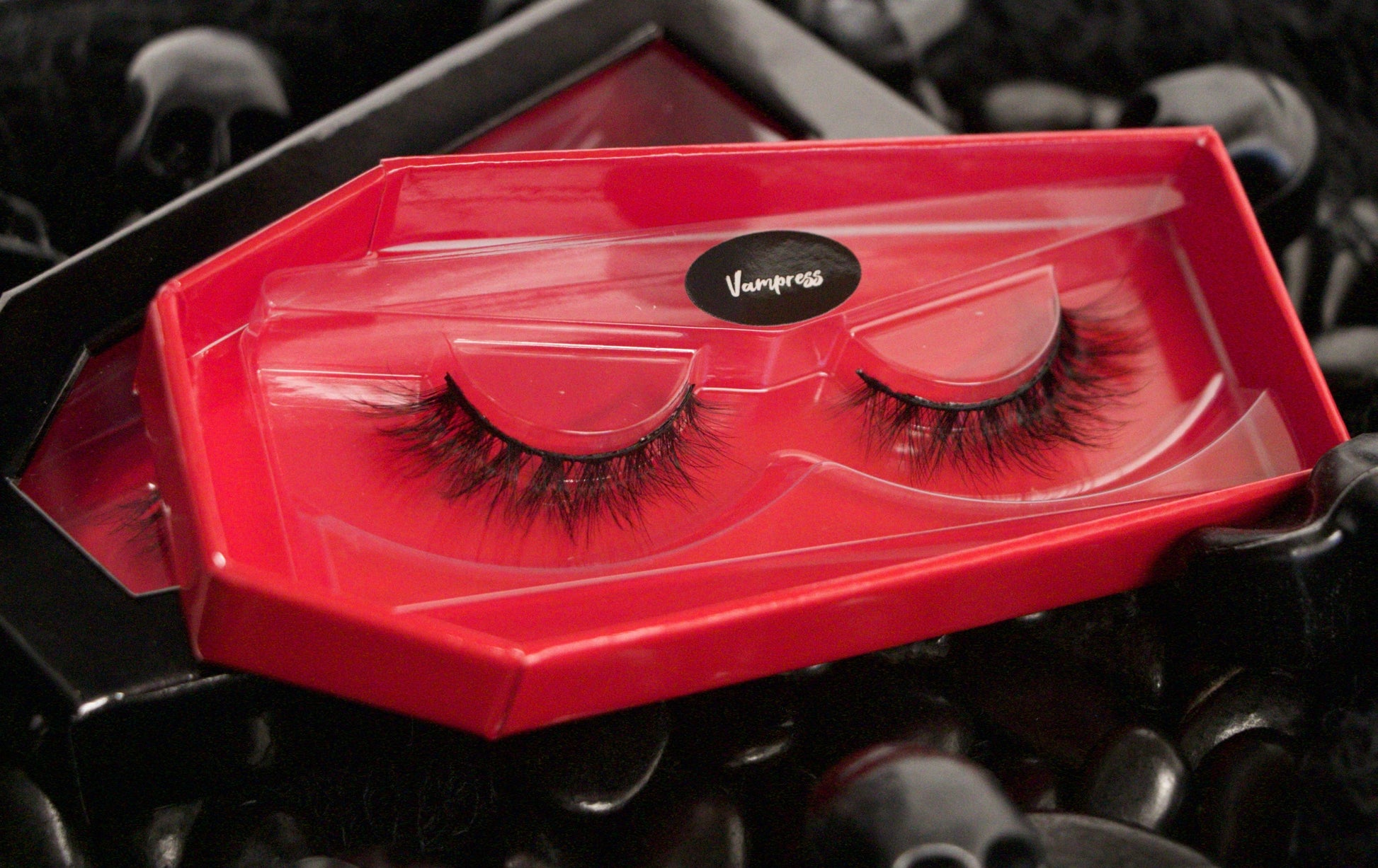 Introducing our Vampress Lashes, where darkness meets elegance in a mesmerizing embrace. Whether you're prowling through shadows or captivating hearts with your gaze, let our Vampress Lashes be your ultimate accessory for embracing the mysterious and alluring essence of the vampire. These lashes are always cruelty-free. 100% Faux Mink.