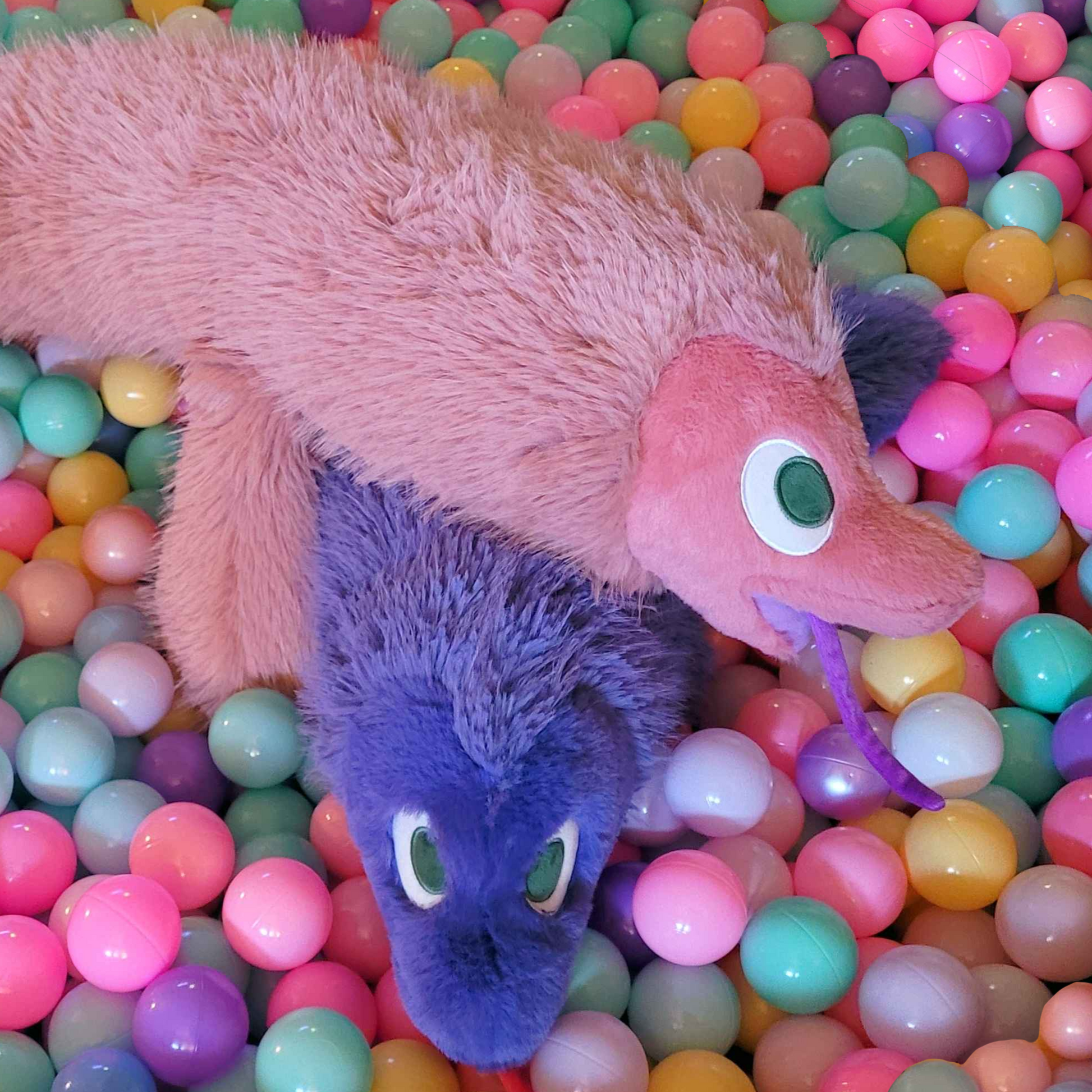 These 56" long wyrms are MADE for cuddling! Soft and loosely stuffed for maximum squishiness, wyrms make excellent pillows.